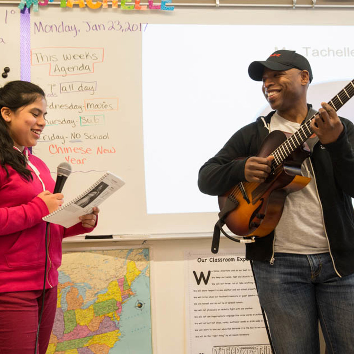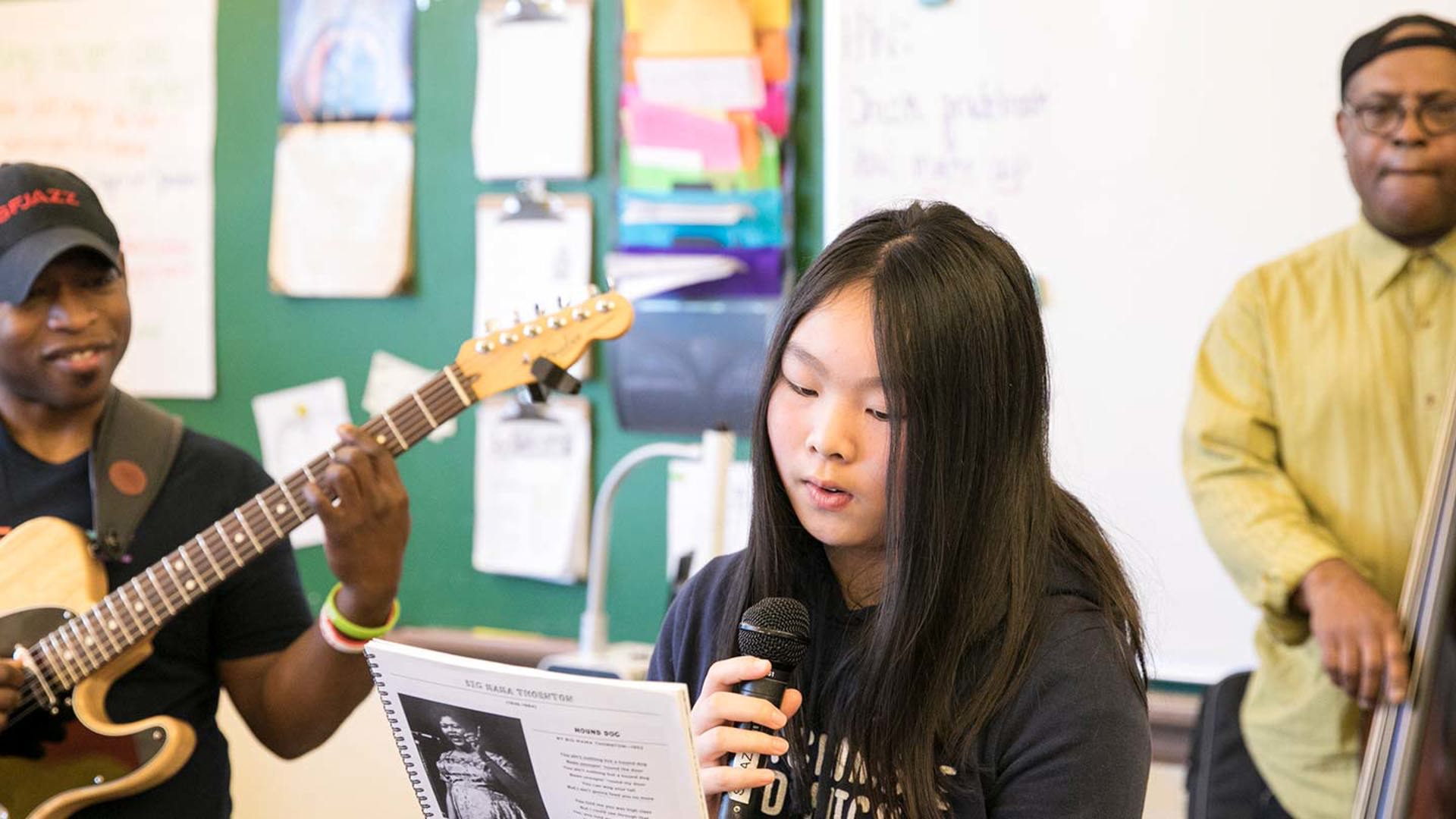 Led by SFJAZZ teaching artists, this residency links the history of blues and poetry to language arts curriculum. While making connections to our common heritage students explore the foundations and history of American jazz, blues, poetry, and spoken word by studying important figures and styles. Combining interactive musical activities with literacy skills development, students create their own spoken word performance to present on their final day backed by a live jazz trio.