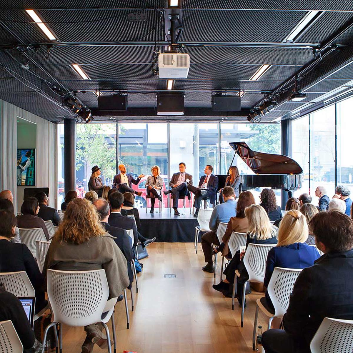 Named for the legendary jazz saxophonist, Joe Henderson Lab is a dramatic space surrounded by glass walls on two sides allowing ample natural and ambient light. Open floor plan accommodates up to 100 seated. Custom Meyer sound system, stage lighting, and video projection.